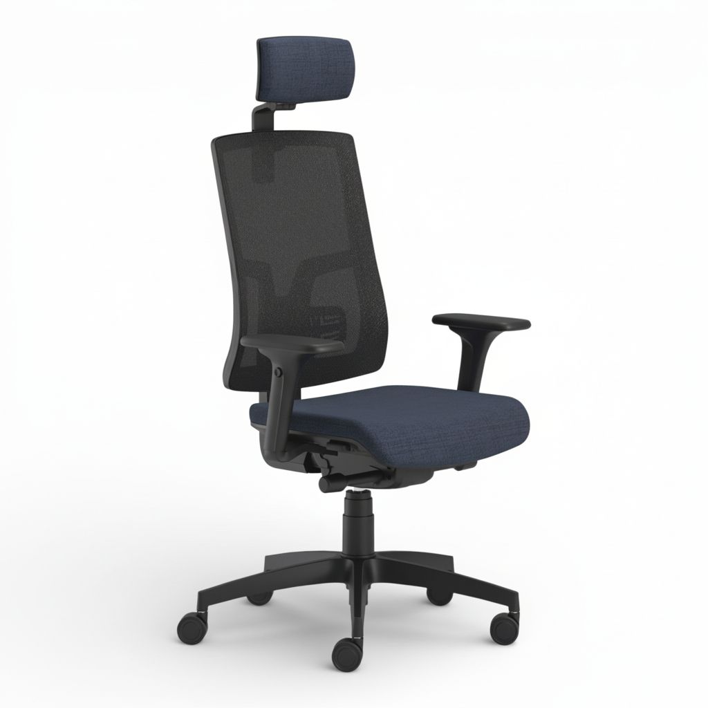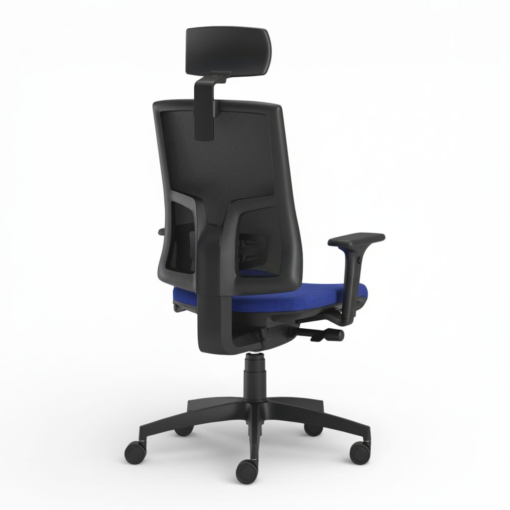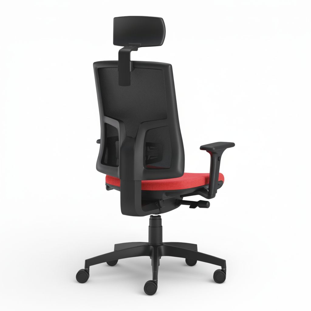 Istnieje możliwość wyposażenia oparcia w regulowany zagłówek, który podnosi komfort użytkowania, szczególnie podczas długotrwałej pracy. Wspiera prawidłową pozycję odcinka szyjnego kręgosłupa, zwiększając ergonomię i wygodę.
