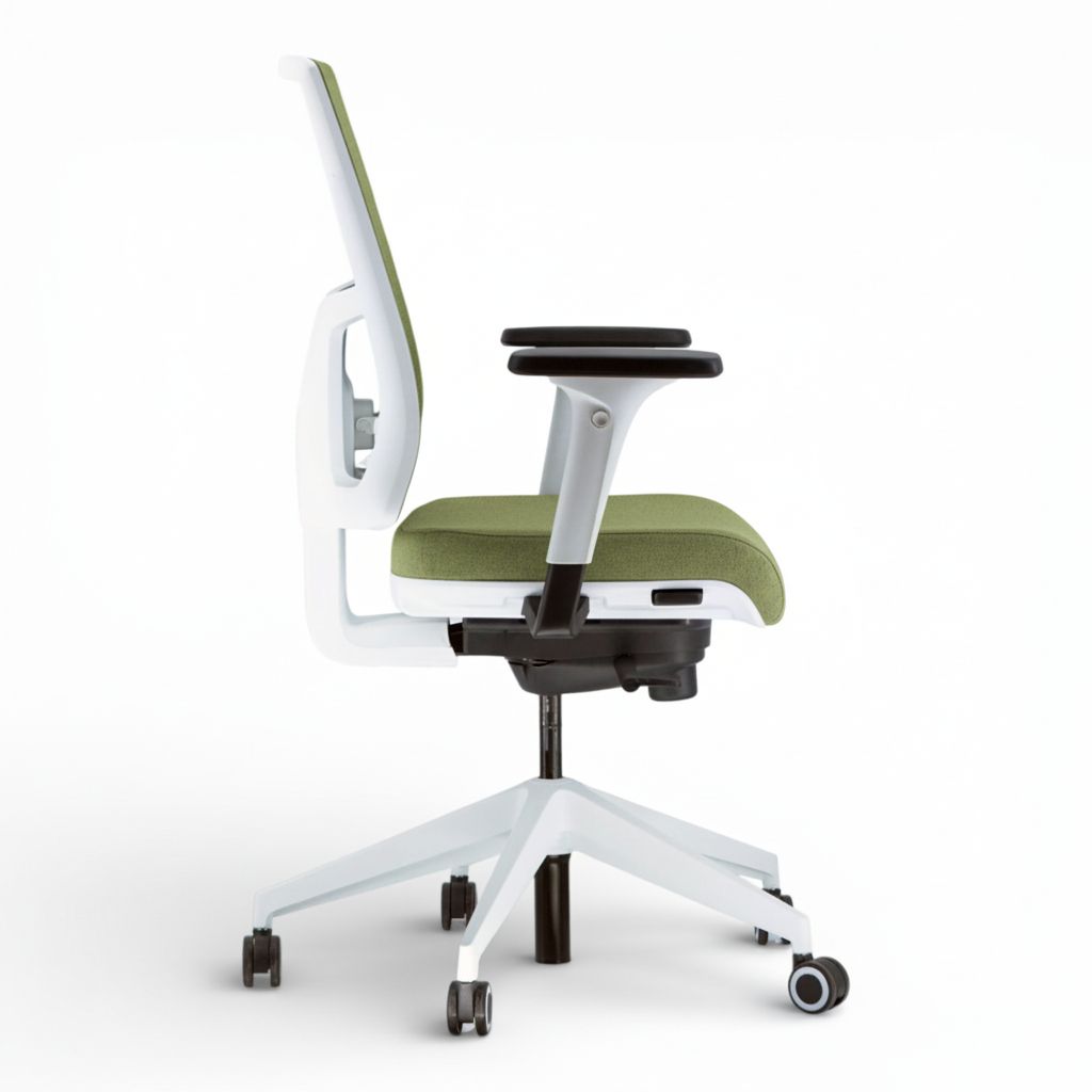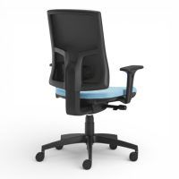 Wariant kolorystyczny fotela SKILL SOFT jest w pełni personalizowany – istnieje możliwość wyboru koloru tkaniny zarówno na froncie oparcia, jak i z tyłu, co pozwala dopasować fotel do identyfikacji wizualnej firmy lub stylistyki wnętrza. To rozwiązanie sprawia, że model ten doskonale wpisuje się w nowoczesne i reprezentacyjne przestrzenie biurowe.