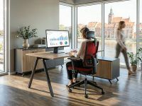 SKILL SOFT to nowoczesny fotel biurowy ergonomiczny, który łączy wysoki komfort siedzenia z estetycznym, dopracowanym wykończeniem. Zaprojektowany z myślą o wielogodzinnej pracy przy biurku, doskonale sprawdza się w biurach, gabinetach oraz przestrzeniach home office, gdzie liczy się zarówno funkcjonalność, jak i elegancki wygląd.