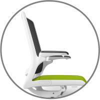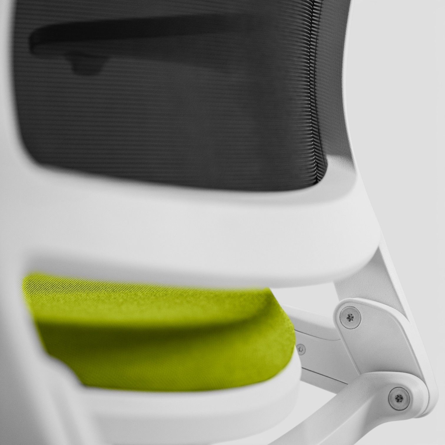 Zintegrowane oparcie z siedziskiem tworzy mechanizm samoważący, który automatycznie reaguje na ruch i ciężar użytkownika. Mechanizm wspiera dynamiczne siedzenie, poprawia ergonomię stanowiska pracy i pomaga utrzymać prawidłową postawę ciała.