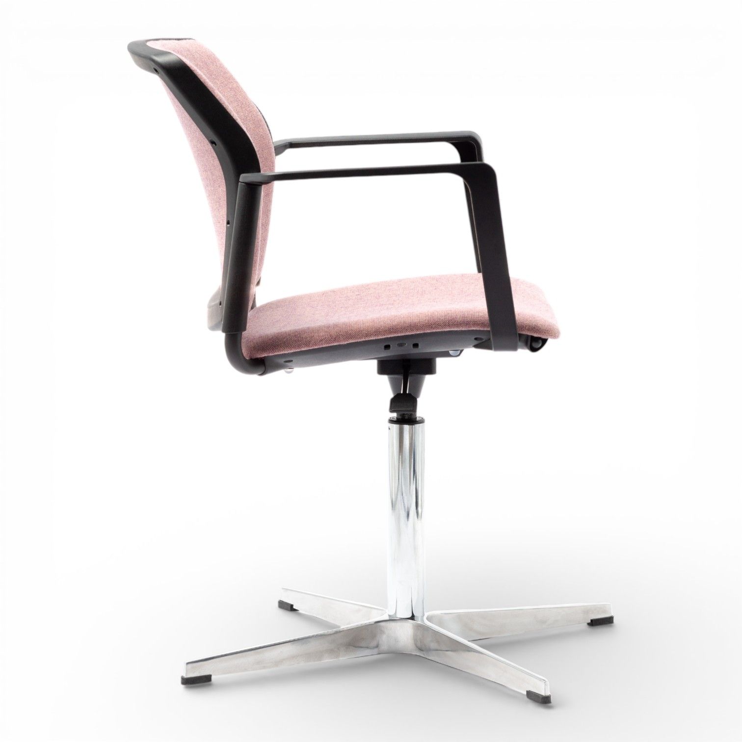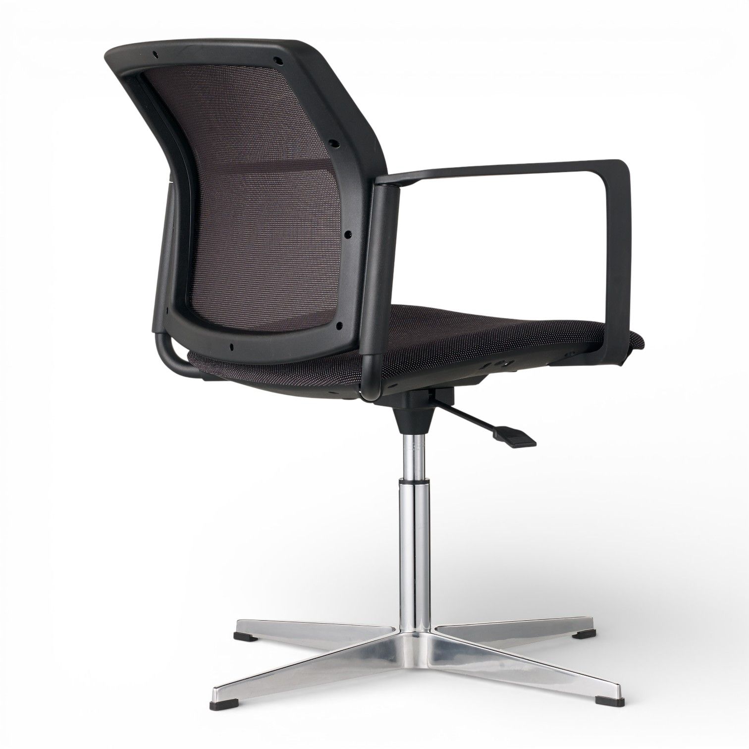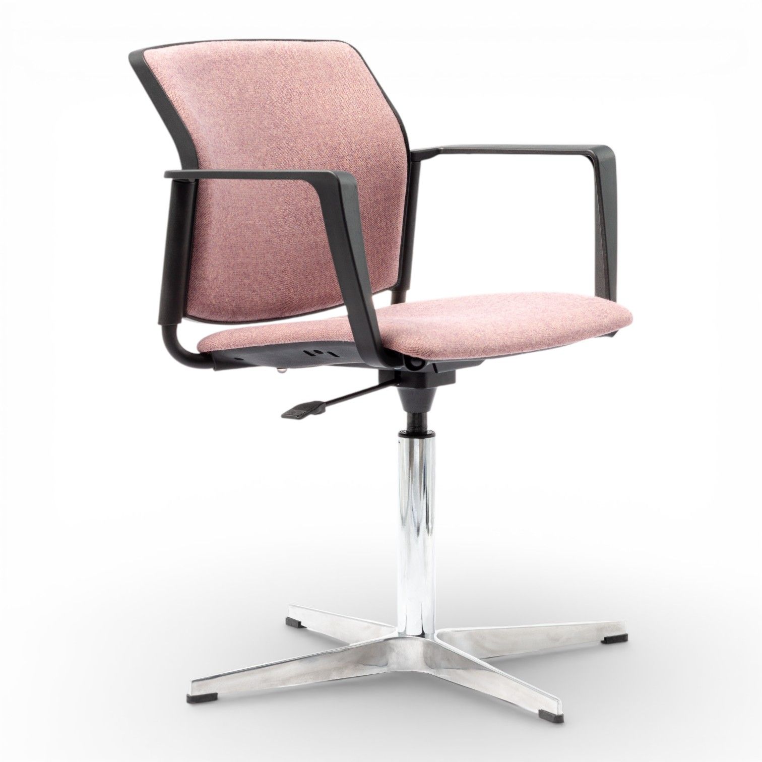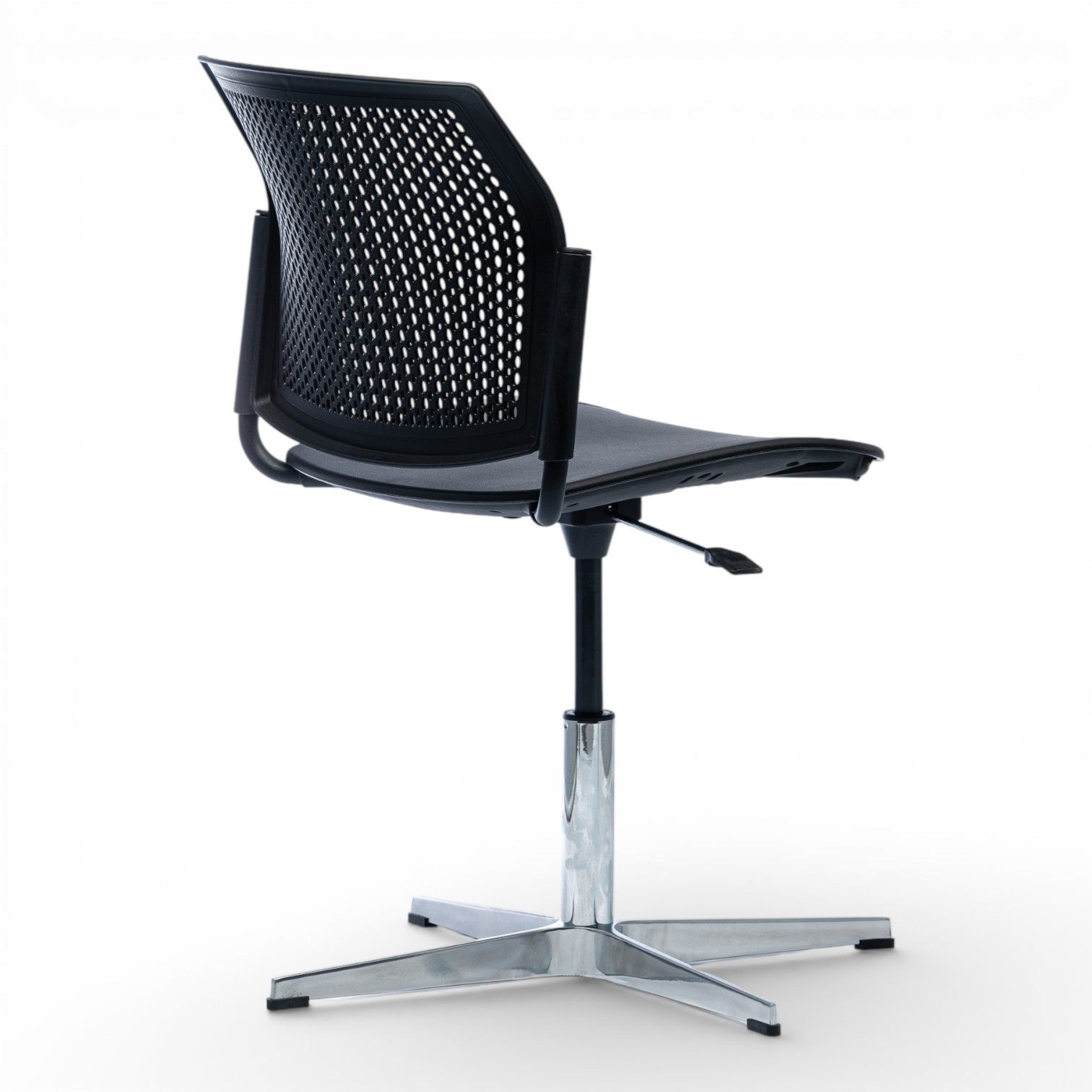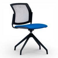Podstawa 4 ramienna wykonana z aluminium polerowanego na efekt chrom lub stalowa lakierowana proszkowo. Podstawa z obrotem w standardzie oraz regulacją wysokości siedziska.