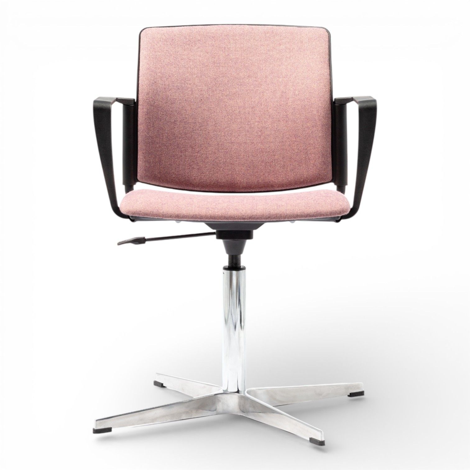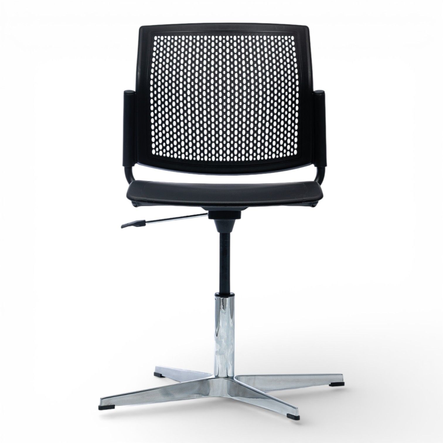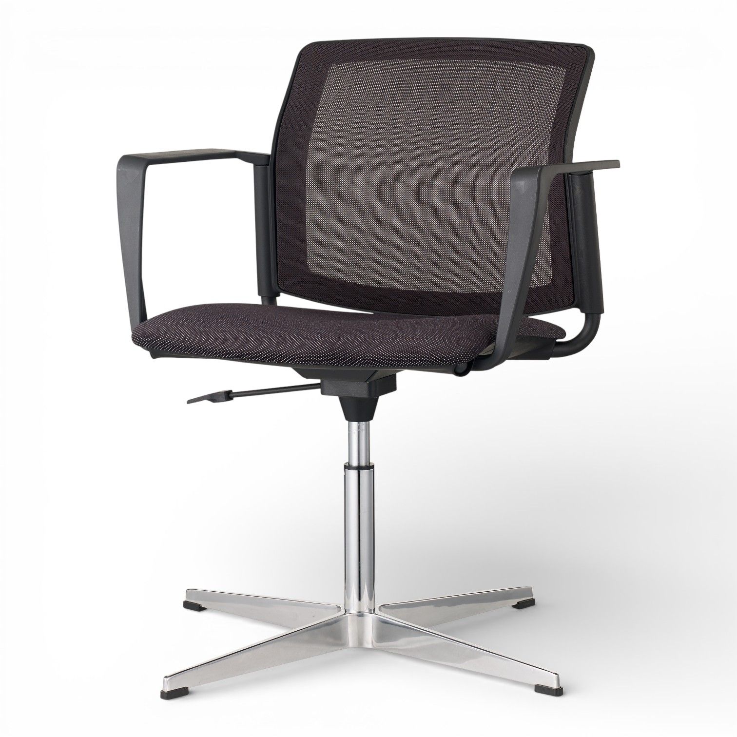 Podstawa 4 ramienna wykonana z aluminium polerowanego na efekt chrom lub stalowa lakierowana proszkowo. Podstawa z obrotem w standardzie oraz regulacją wysokości siedziska.