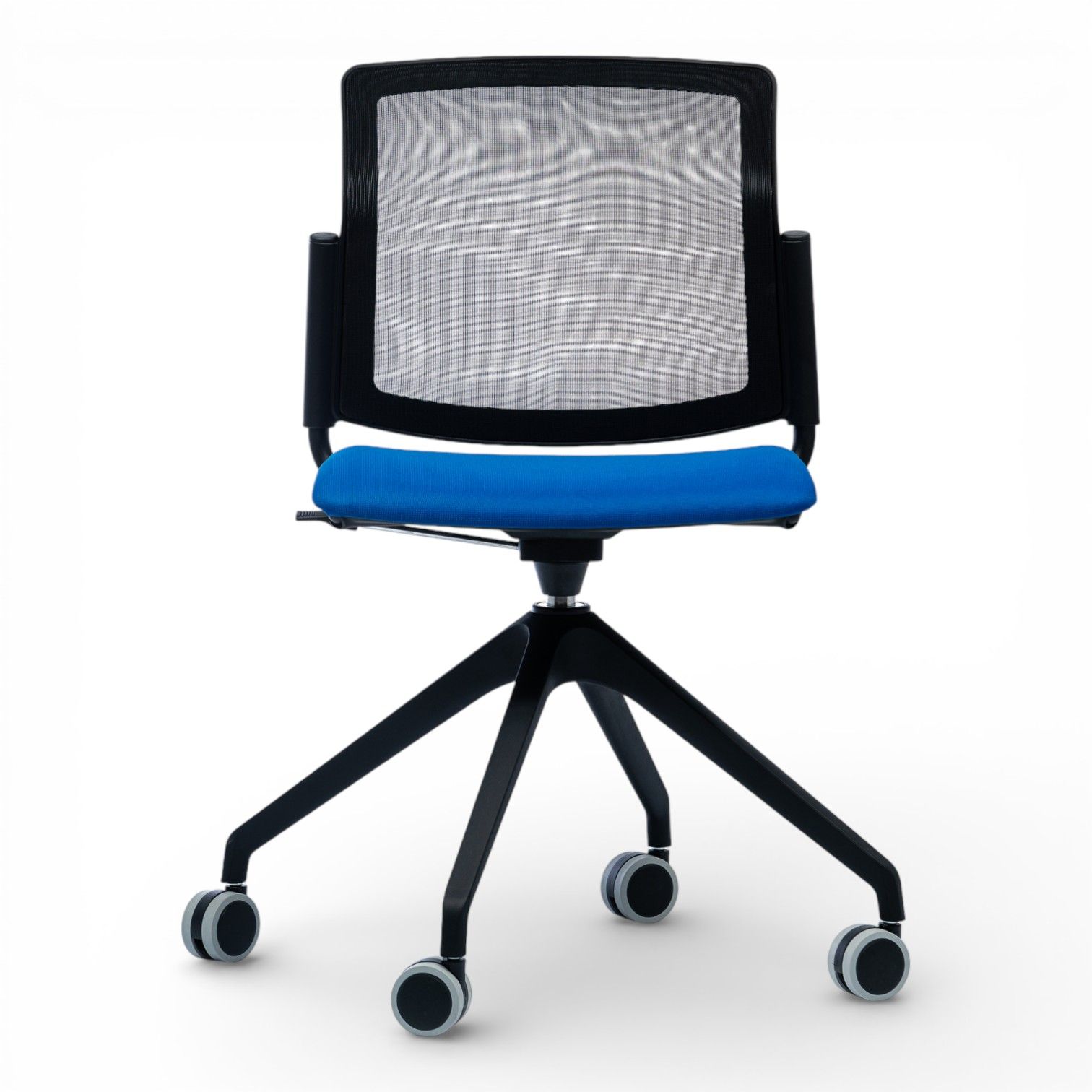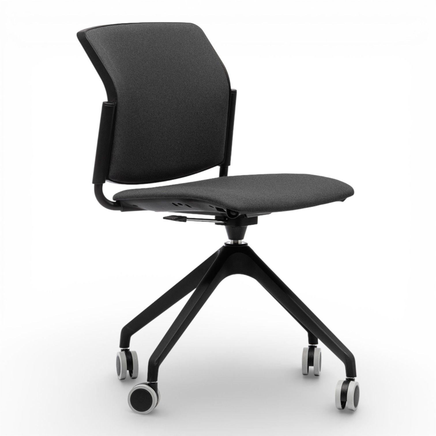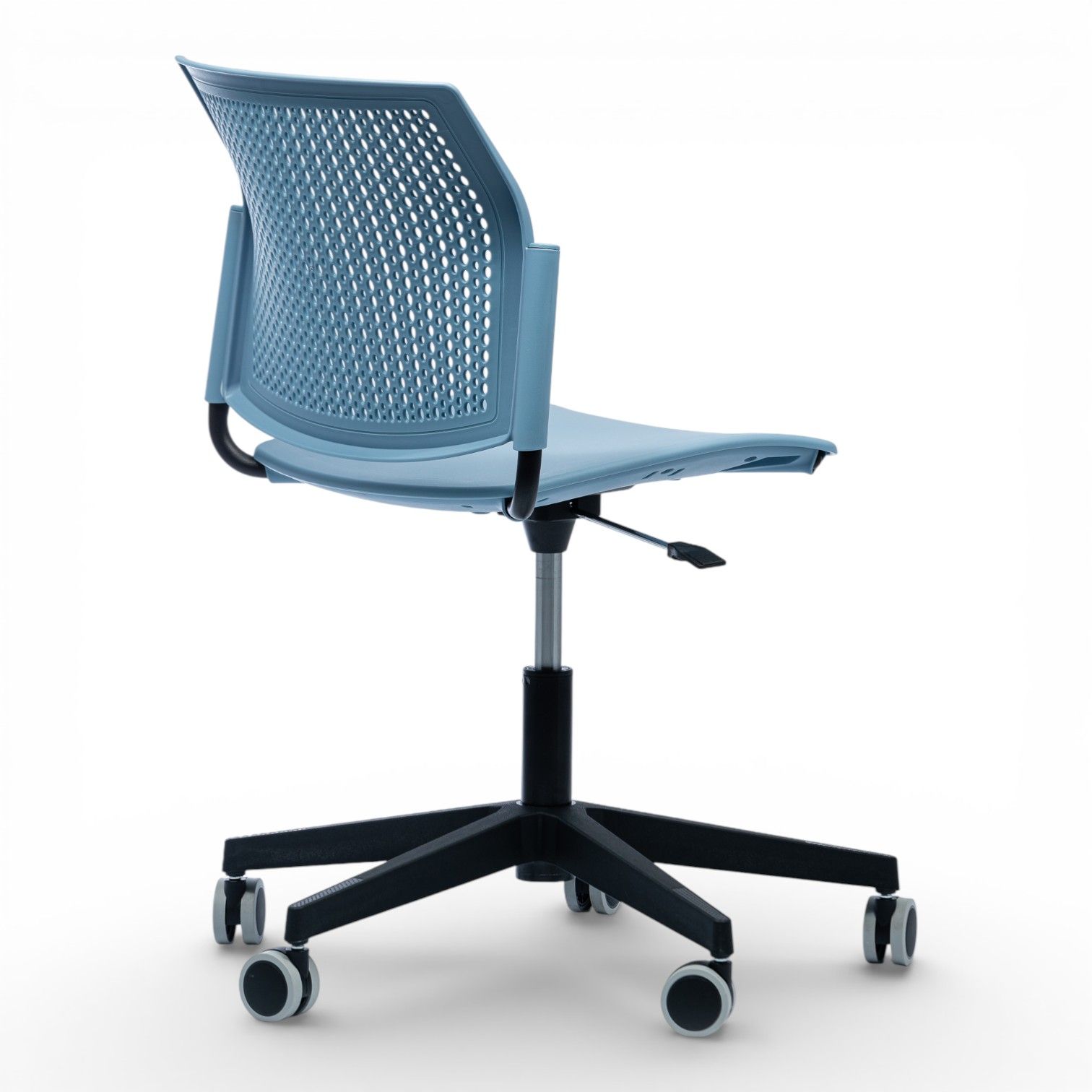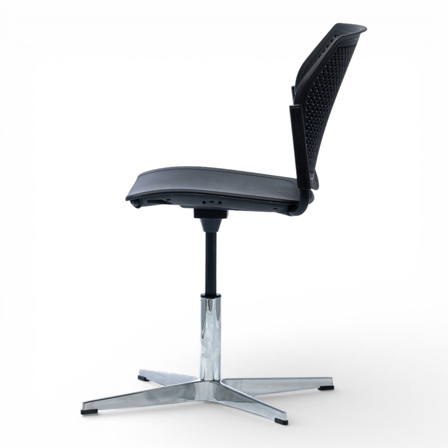 Podstawa 4 ramienna wykonana z aluminium polerowanego na efekt chrom lub stalowa lakierowana proszkowo. Podstawa z obrotem w standardzie oraz regulacją wysokości siedziska.